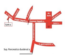 Sometimes tortuous right hepatic artery does not give a single cystic artery but supplies the gall bladder with several small twigs. The right hepatic artery is injured while securing them. Injury to right hepatic artery can be fatal in presence of impaired liver function [24-26]. It is usually the right hepatic artery that is in danger during this surgery and must be located before ligating the cystic artery [5]. Because numerous variations in origin and branching pattern of right hepatic artery have been reported [27].