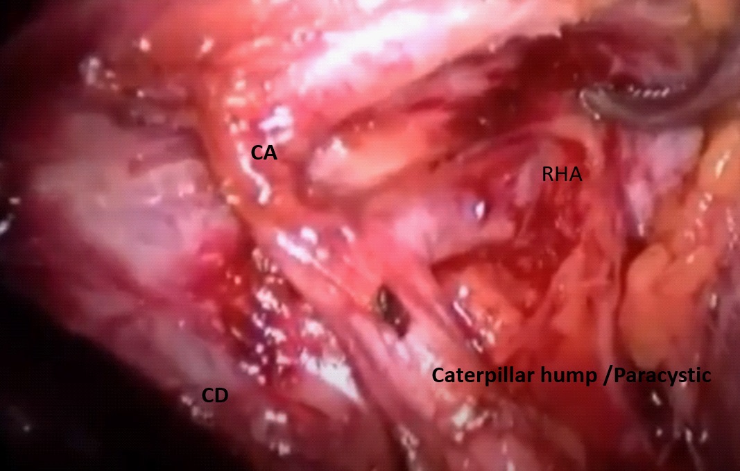 Keywords: caterpillar hump; moynihan hump; right hepatic artery injury; cystic artery; cholecystectomy; laparoscopic cholecystectomy; vascular injury during lap; cholecystectomy; difficult callots anatomy