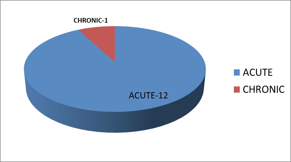 Methods: Study of 13 patients admitted between 1ST JUNE 2012 and 31 ST MAY 2014 At DR.B R Ambedkar Medical College.