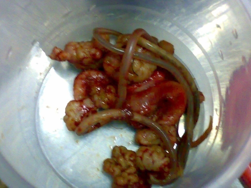 • Jejuno-ileal intusussception with multiple polyps in the jejunum.