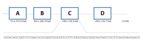 10-15% of sporadic CRCs shows MSI-H being mainly due to epigenetic silencing of MLH1 gene [9]. The methylation of regions C and D located in MLH1 gene promoter (figure 1) was correlated to the absence of protein expression [10,11].